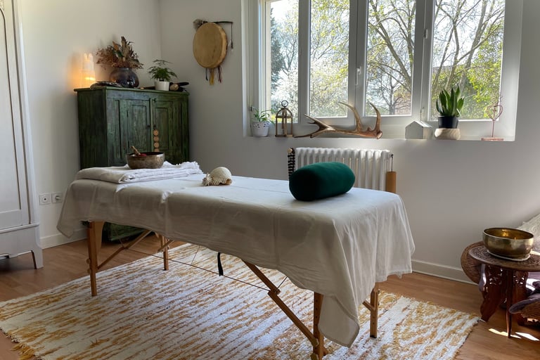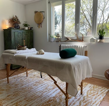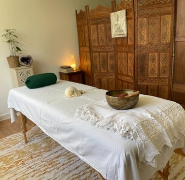 Durée : 1h30 (un temps pour échanger, 25 à 50 min de soin en fonction du besoin, temps pour soi)